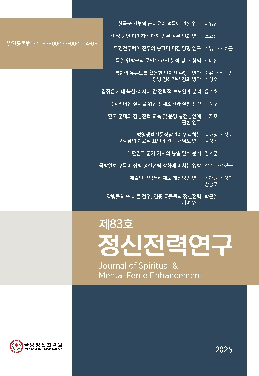 - 피인용수 222 국방정신전력원의 최근 3년간 피인용수를 제공해 드립니다.