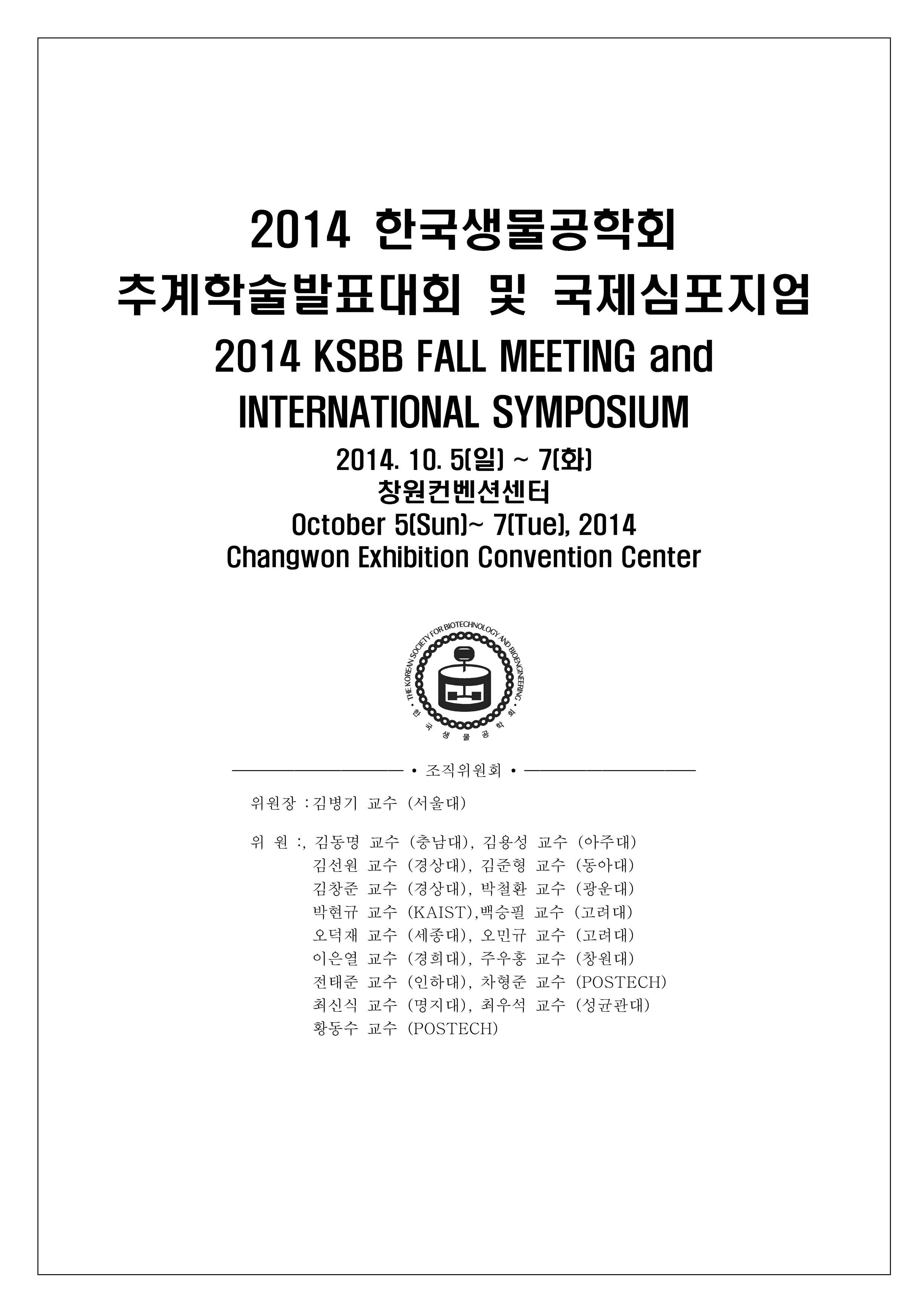 2014 한국생물공학회 추계학술발표대회 및 국제심포지엄 초록집