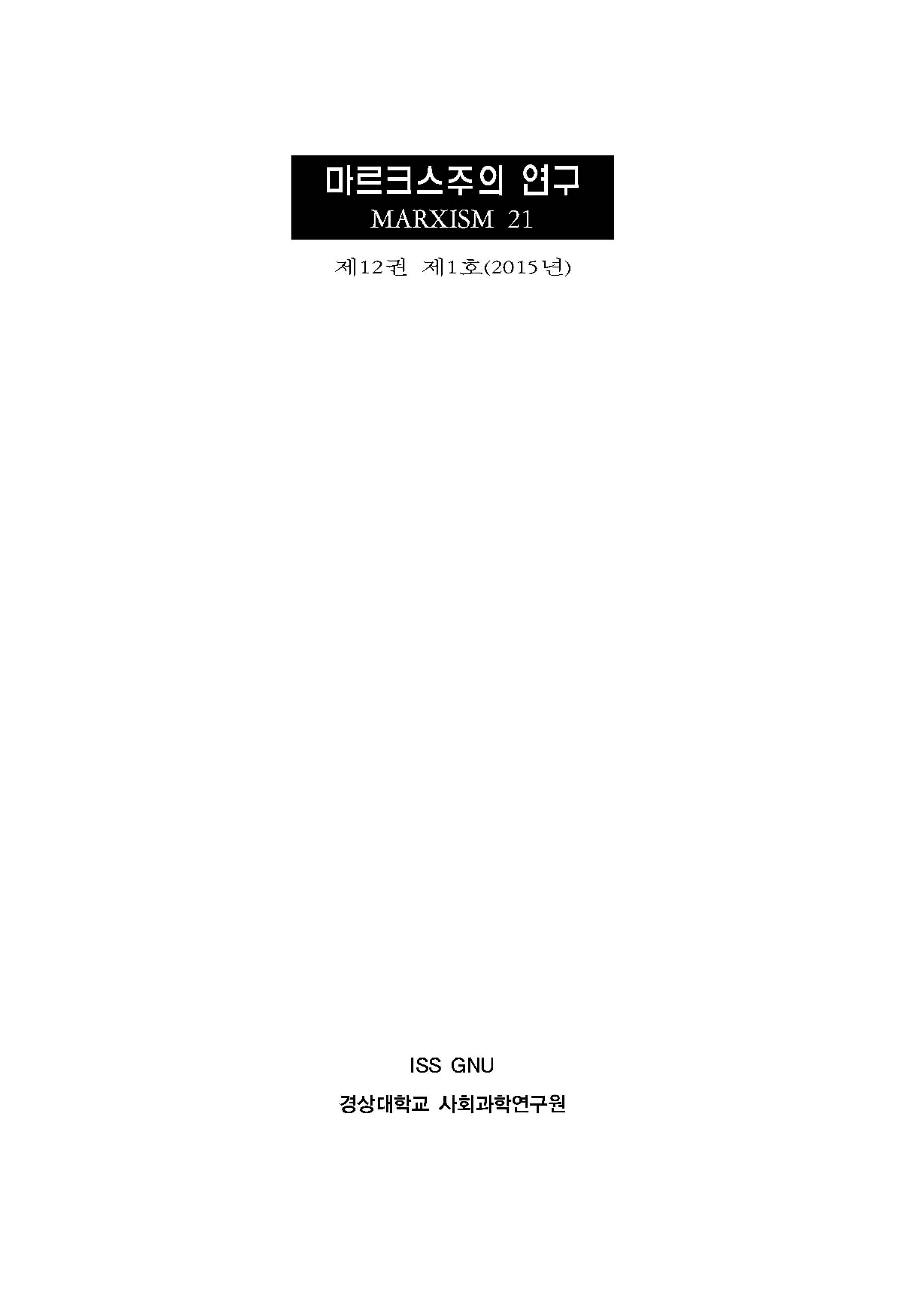 마르크스주의 연구 제12권 제1호
