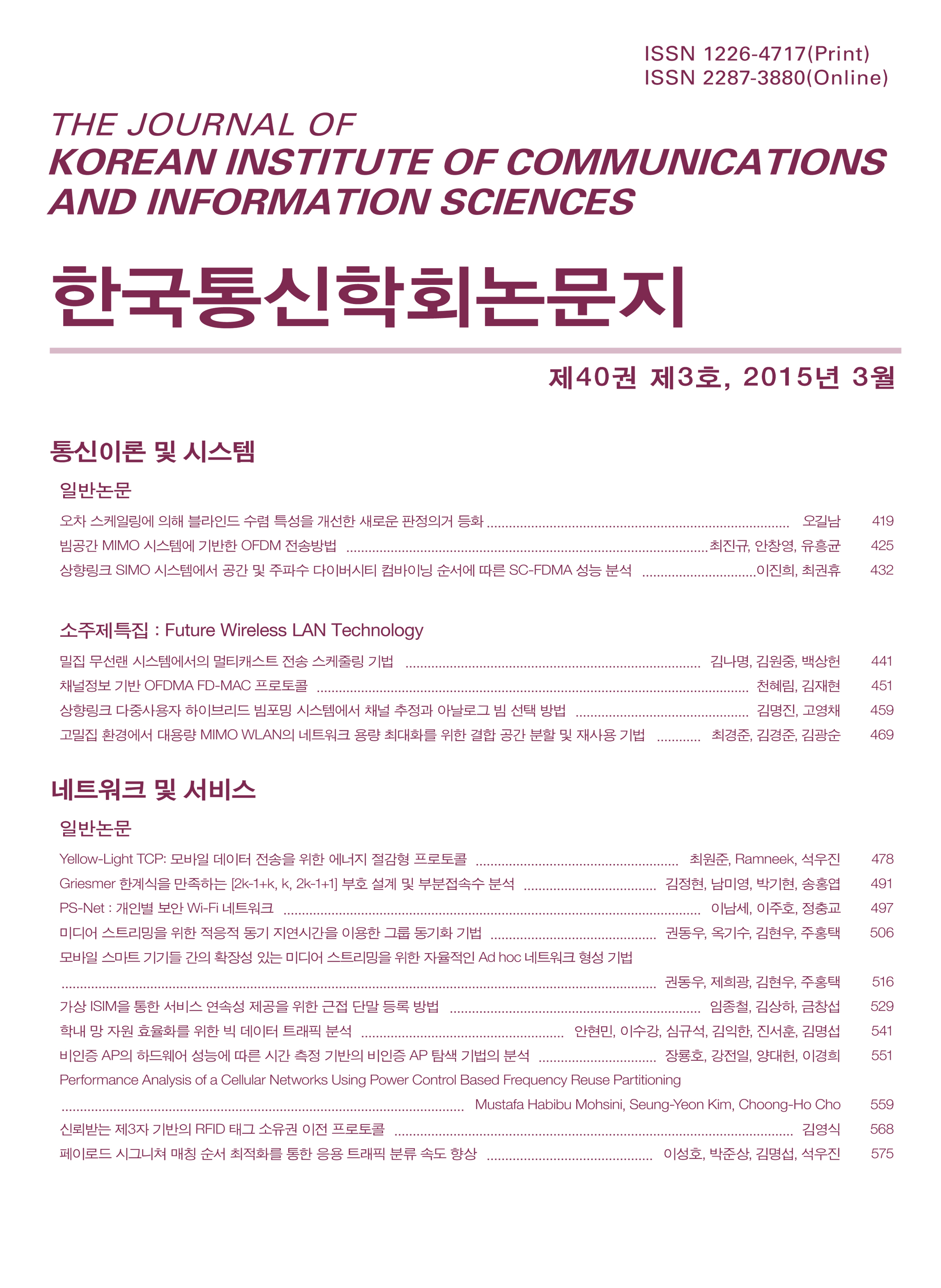 한국통신학회논문지 제40권 제3호