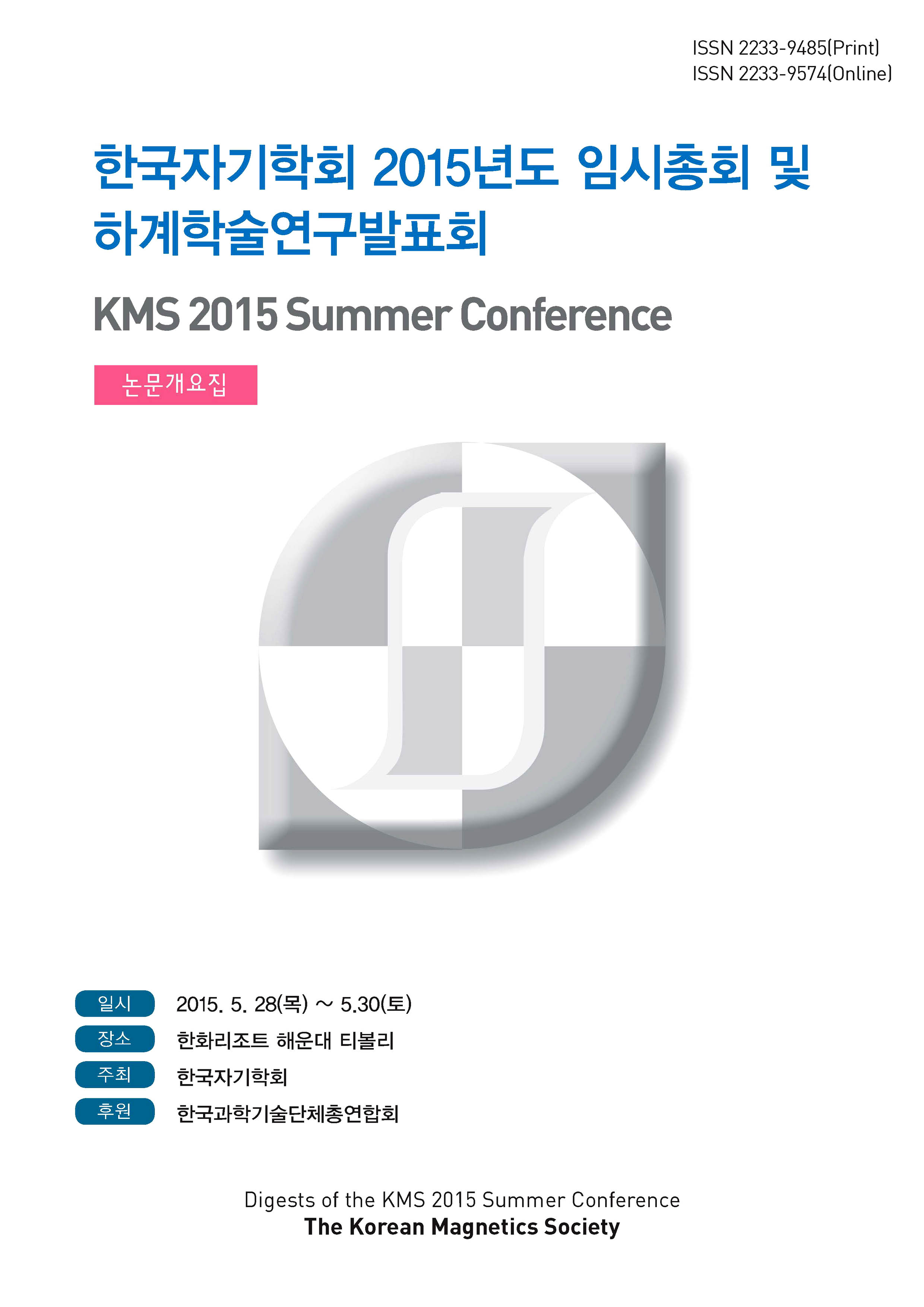 한국자기학회 2015년도 임시총회 및 하계학술연구발표회