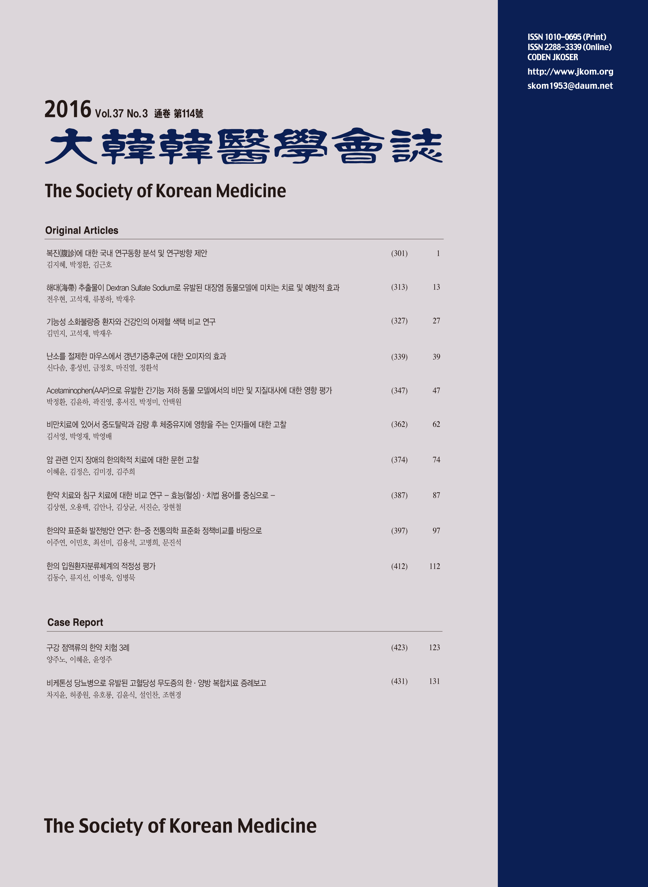 대한한의학회지 제37권 제3호 (통권 제114호)