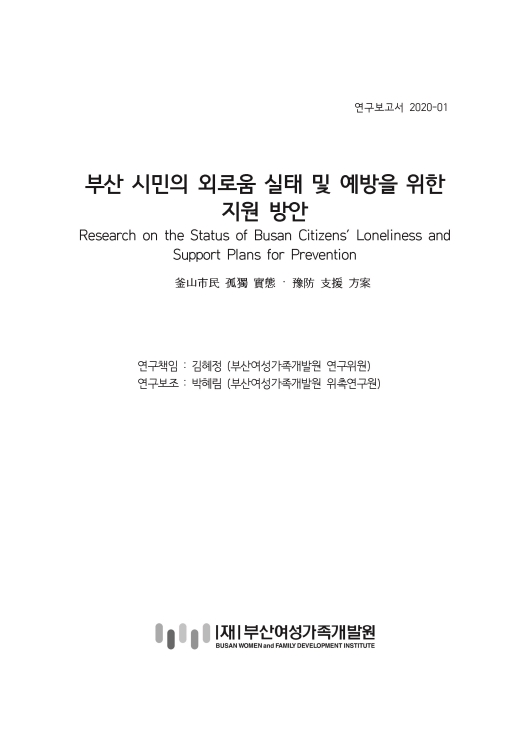[연구보고서 2020-1] 부산 시민의 외로움 실태 및 예방을 위한 지원 방안