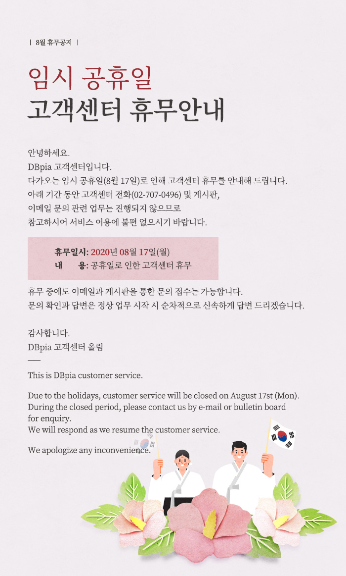 | 다음글 | URL 링크 관련 서비스 안내 : 2020.8.15.(토) 09:00 ~ 8.16(일) 24:00 |